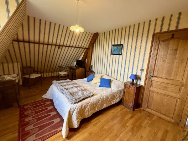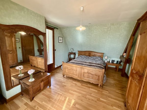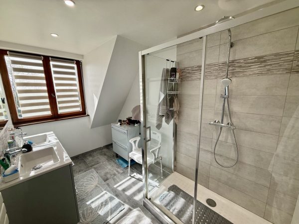 À l’étage, un palier dessert trois chambres et une salle de douche avec toilettes.