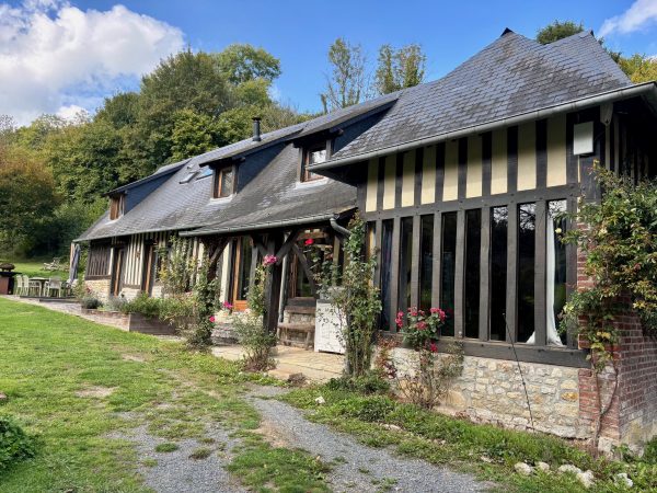 Winstone & Associés vous présente à la vente une propriété normande typique du pays d’auge, composée de quatre maisons d’habitation, une grange et un ancien four à pain, sur un terrain de 2,8 hectares traversé par un cours d’eau.