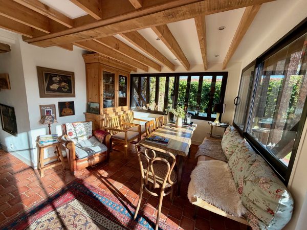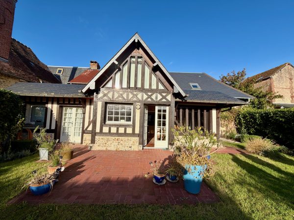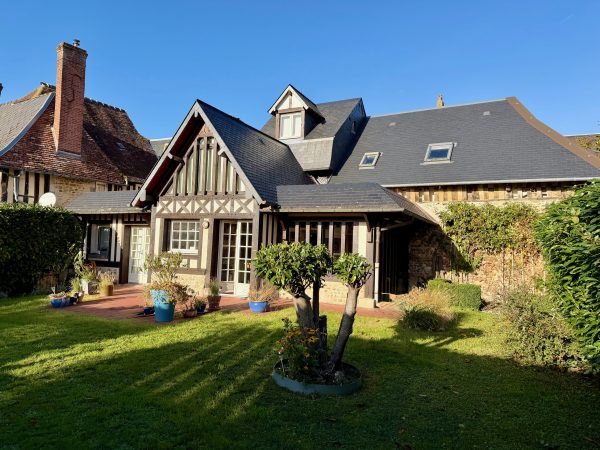 Winstone & Associés vous présente une traditionnelle maison normande rénovée avec un charmant jardin au sein village de Beaumont-en-Auge !