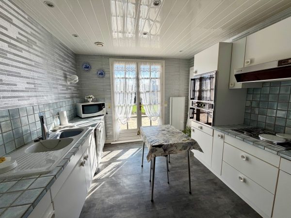 La maison s’ouvre sur une entrée menant à un agréable séjour avec cheminée, une cuisine indépendante, un bureau, ainsi qu’une chambre pouvant également faire office de seconde pièce de vie. L’ensemble donne accès à une terrasse exposée plein sud.